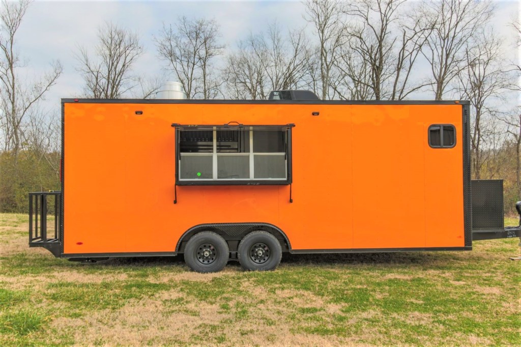 The 8.5×22 Fully Loaded Trailer from Prime Food Trailers is a premium, turnkey mobile kitchen and concession trailer built to meet the demands of serious food-service entrepreneurs. With a sturdy .030″ aluminum exterior, heavy-duty 5200 lb drop-spring axles, and a 60″ triple tube tongue, the trailer offers a robust towing platform that can carry full commercial kitchen equipment safely and reliably. Inside, the trailer features a 7′6″ interior height, stainless-finish walls and ceilings, rubber coin-style flooring, and smart built-ins such as vegetable prep sink, mop sink, overhead storage cabinets and a deep stainless-steel work table — creating a smooth, hygienic and professional work environment. The exterior is equipped with a six-foot fold-down service shelf (for serving / order hand-off), a spare-tire compartment, propane cages for two 100 lb bottles, LED flood lights and blackout-style trim and wheels — making it a fully operational, “ready-to-go” food business unit. The build also includes a fire-suppression system and comprehensive electrical, plumbing, and ventilation infrastructure, suitable for heavy cooking equipment, refrigeration and prep work. In effect, this trailer is not just an empty shell — it is a full-scale, customizable mobile food facility that can be adapted to any menu or food-service concept with minimal extra build-out.