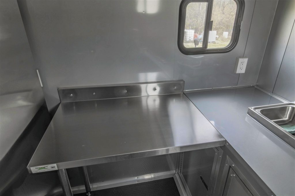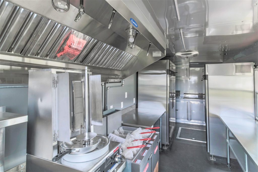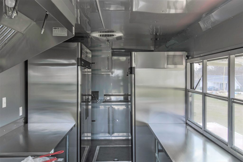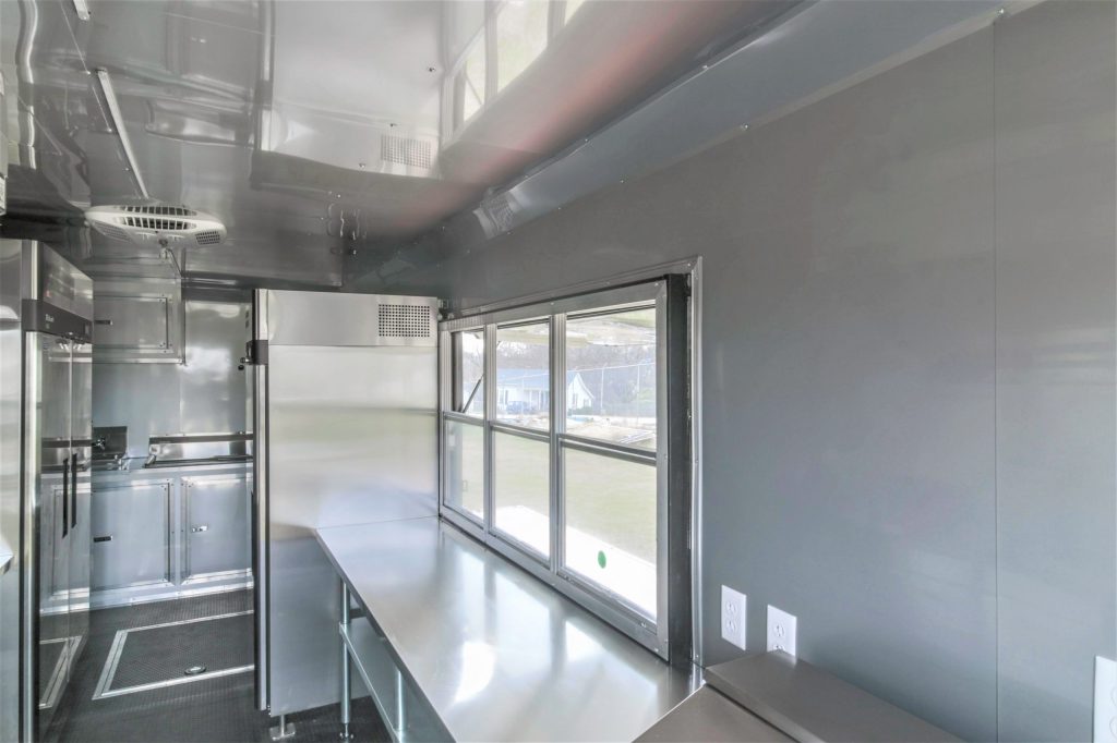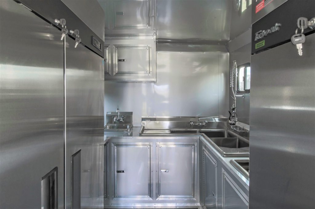 Stainless-aluminum (mill finish) interior walls and ceiling for easy cleaning and hygienic food operations
