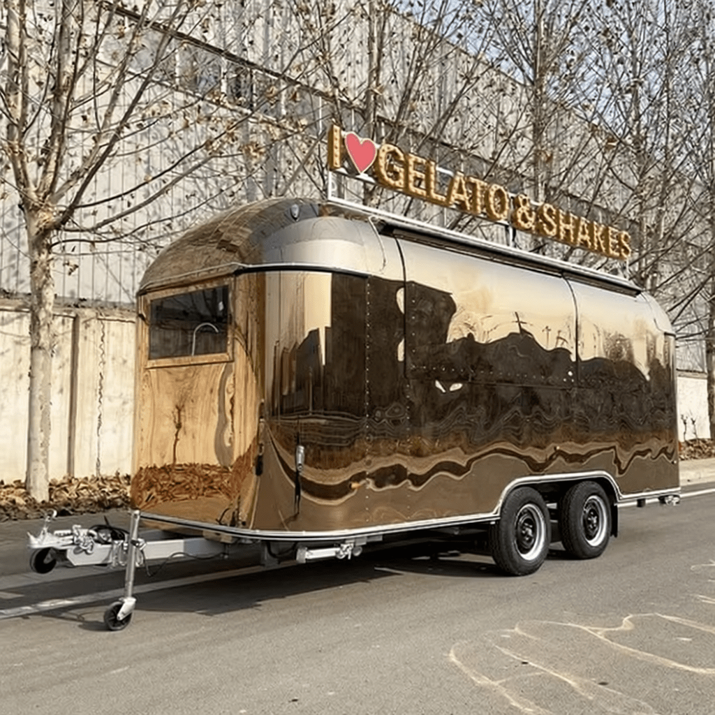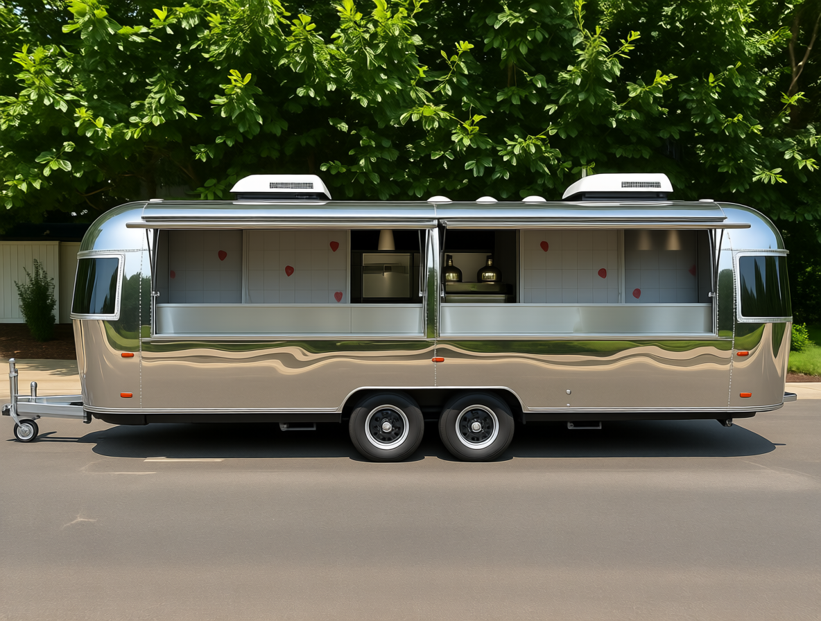 Exterior: sleek polished Airstream-style finish for strong brand visibility and customer appeal